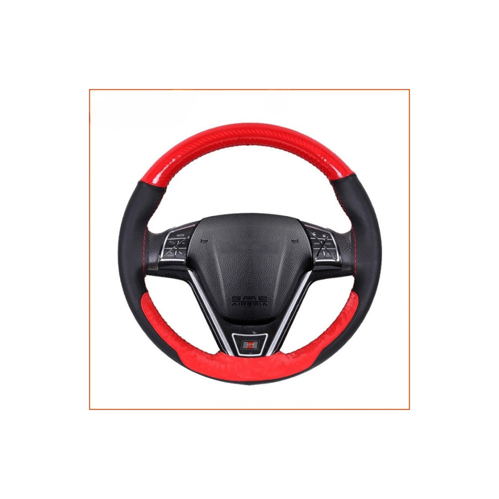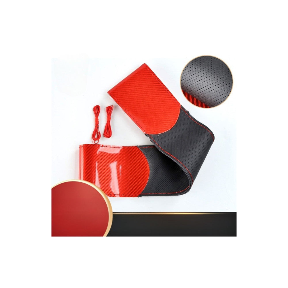 Husa volan cu ac si ata din piele cu gaurele marime M, culoare rosu+carbon si cusatura rosie PREMIUM