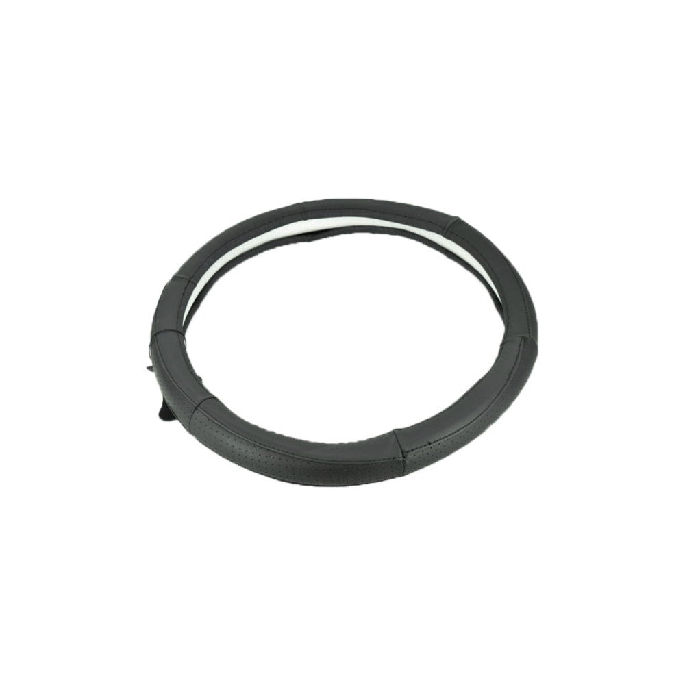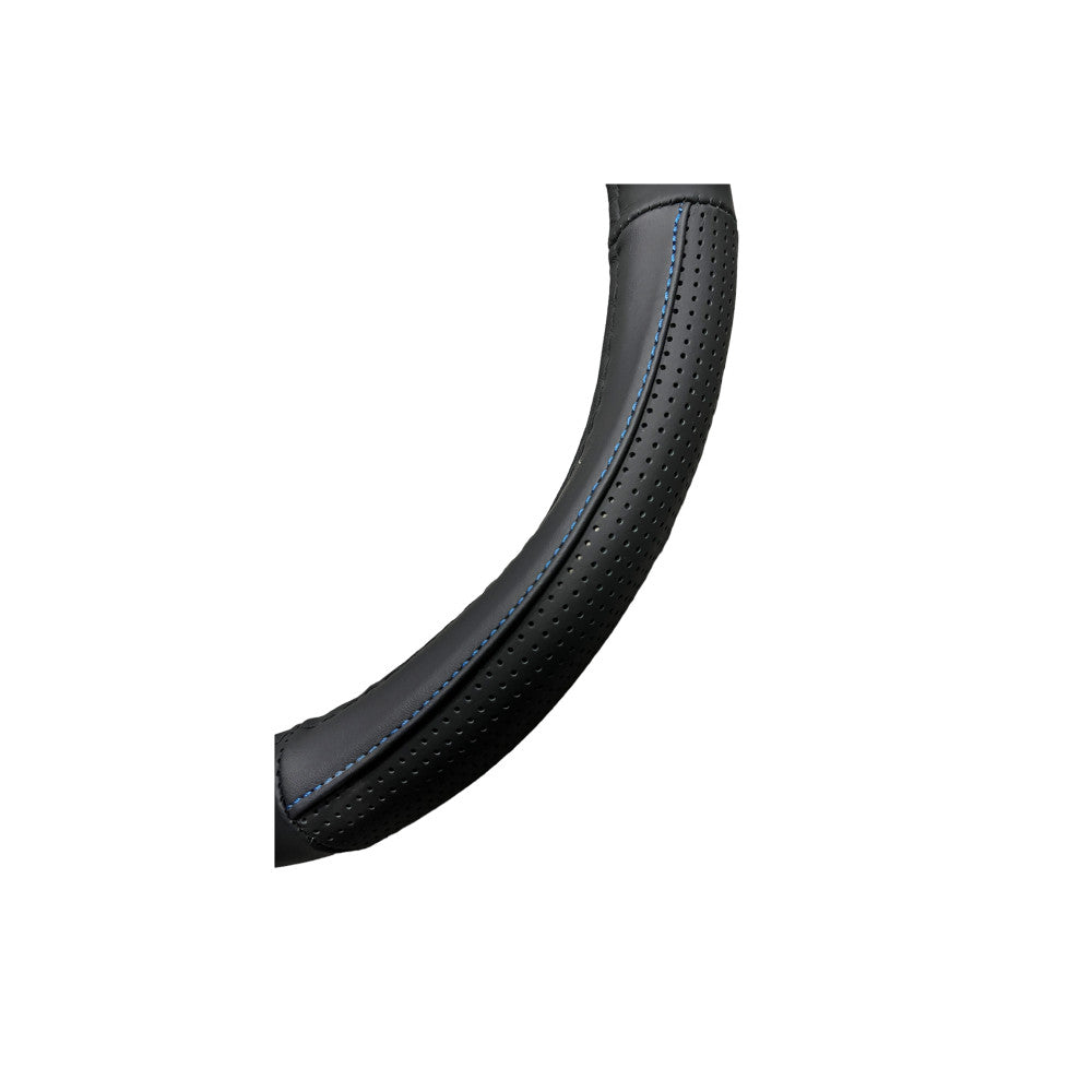 Husa volan din piele cu gaurele, marimea M - culoare negru cusatura Albastra
