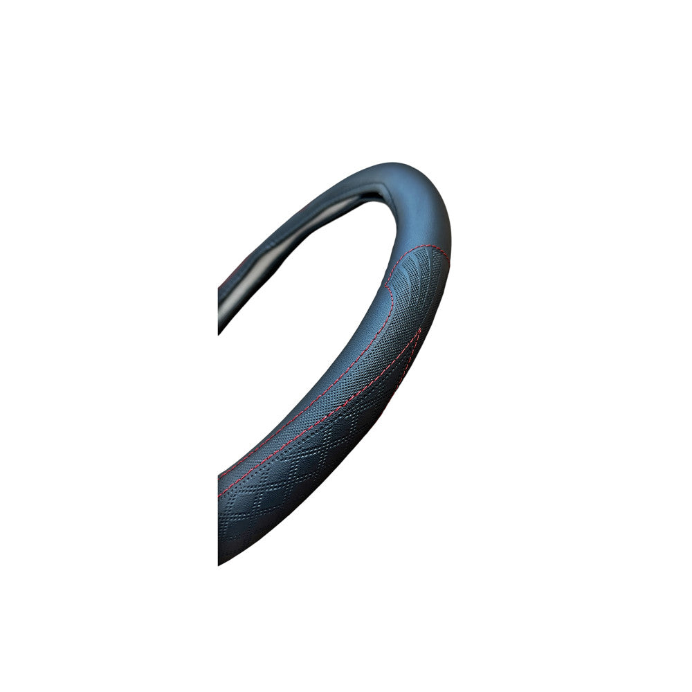 Husa Volan Imitatie Piele marimea M,culoare Neagra cusatura Rosie