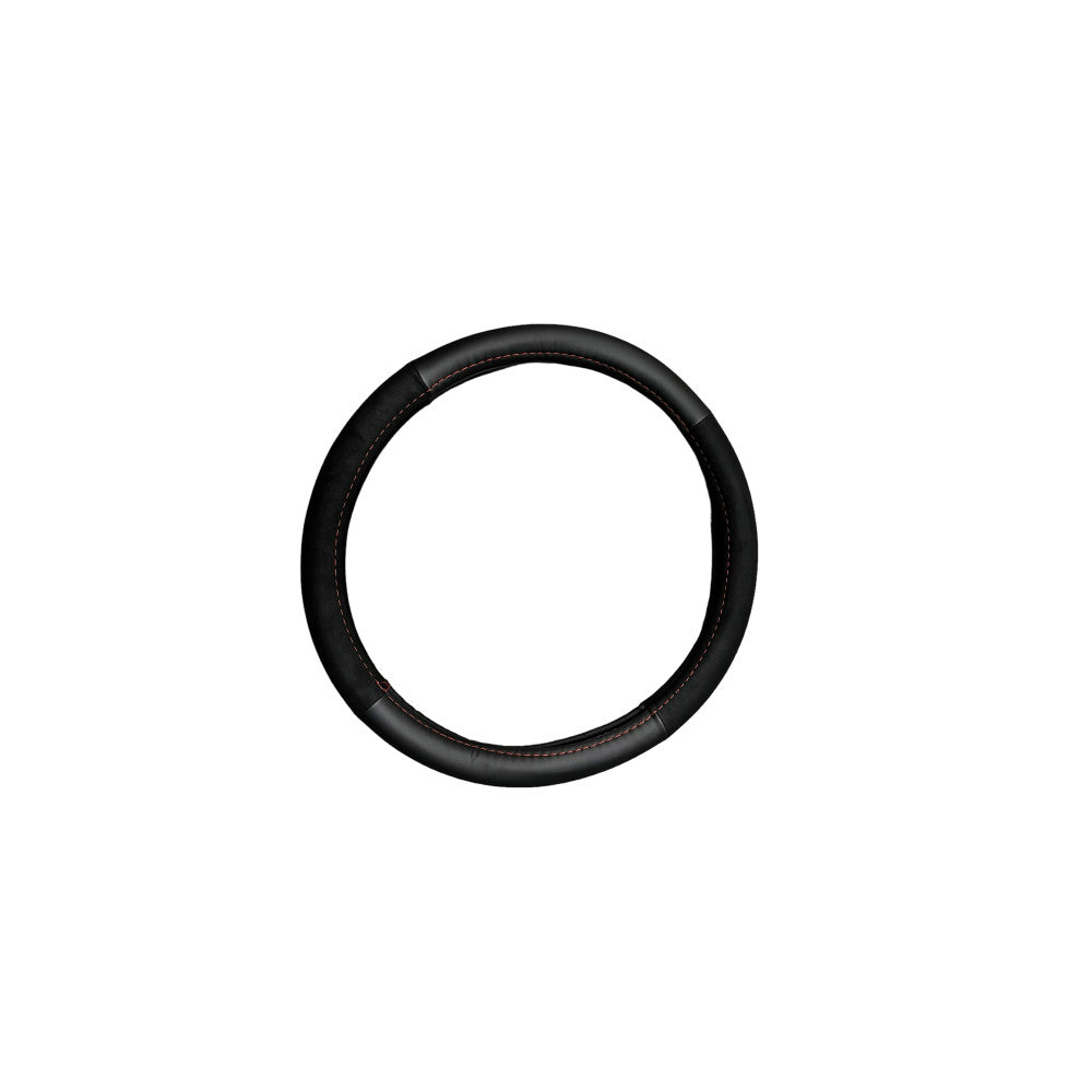 Husa volan imitatie piele si alcantara , Marimea M, culoare negru + cusatura rosie